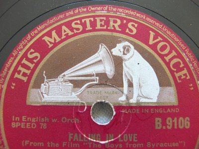Thinking of HMV, I went up into the attic and dug out my family heirloom 78rpm records in order to get a photo. I wonder if my future inheritors will gather round great granny’s i pod. By then, all sensual inputs will be wired straight into their brains and lovemaking will be part of their file-share menu. Marriage will be a password exchange. I’m not sure if this is the future or the present.