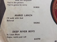 On the record sleeve was an ad for Mario Lanza singing I’ll walk with God. My parents loved this song and if you’re too young to have heard him, here is a link to a feast.