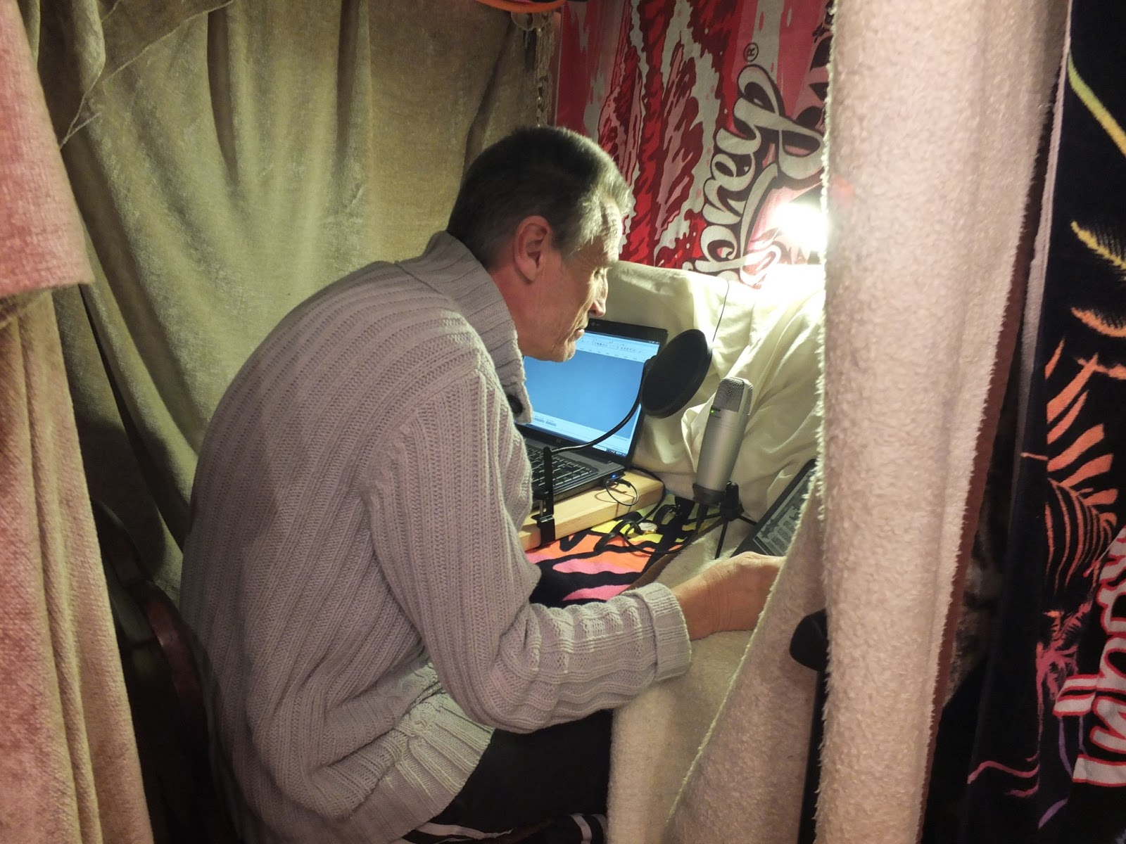 Gypsie Rosalee’s fortune telling tent?  No – it’s Jasper de Montfort (really?) in his DIY sound booth!