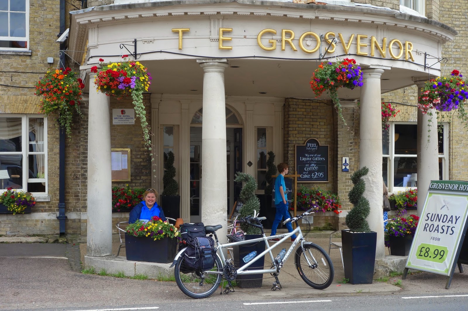 Getting away from the editing desk on our tandem was wonderful. I had completed a whole twelve miles before I had to take a coffee break in the ultra posh town of Stockbridge in Hampshire. The dropped H from the sign is in honour of my French/Cockney accent. Well – it’s an ‘otel innit. I reckon they took it down for me so that I didn’t feel out of place.