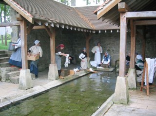News that Facebook has had a slight fall in users has left me wondering if we need to recreate some of the old fashioned social networks. In France some of these have never gone away. The cafe, the street market and the long aisle blocking supermarket chat still rival cyberspace. In the Boulangerie this morning the young assistant spent two or three minutes talking to an old guy about his daughter’s dog. Husbands, wives and children in the same house do not send one another e-mails. Sadly the old town and village lavoirs have fallen out of use. These were areas of a river or stream partitioned to allow the communal washing of laundry and of course the exchange of News, blues and views. Whenever I come across an old lavoir I feel like writing a story where young Primrose Fodderfurrow (Marguerite Vachemouton) (Foundling orphan and probably a misplaced aristocrat) takes her mum’s table linen down to the river and learns that there’s to be a party at the big house (Château). Sounds like a winner to me. Anyone wanna suggest a title? Tell you what – a free copy for the winner!